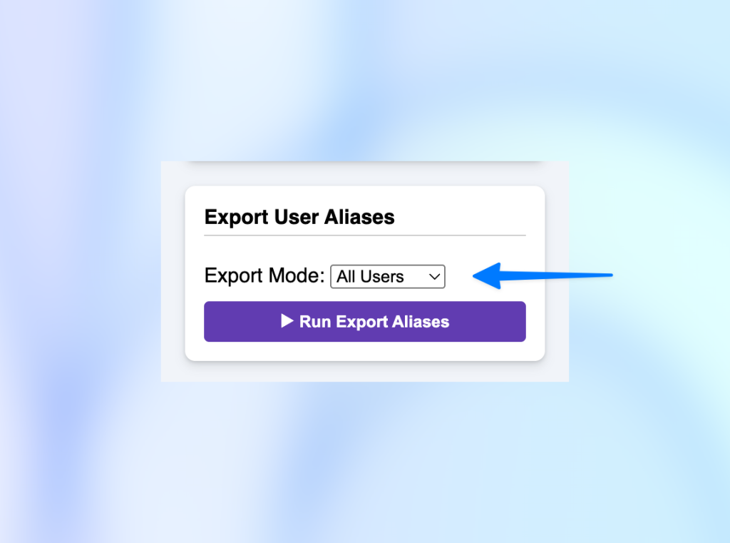 • Export for a Single User: If you only need to see aliases for one person, enter their primary email address in the sidebar.
