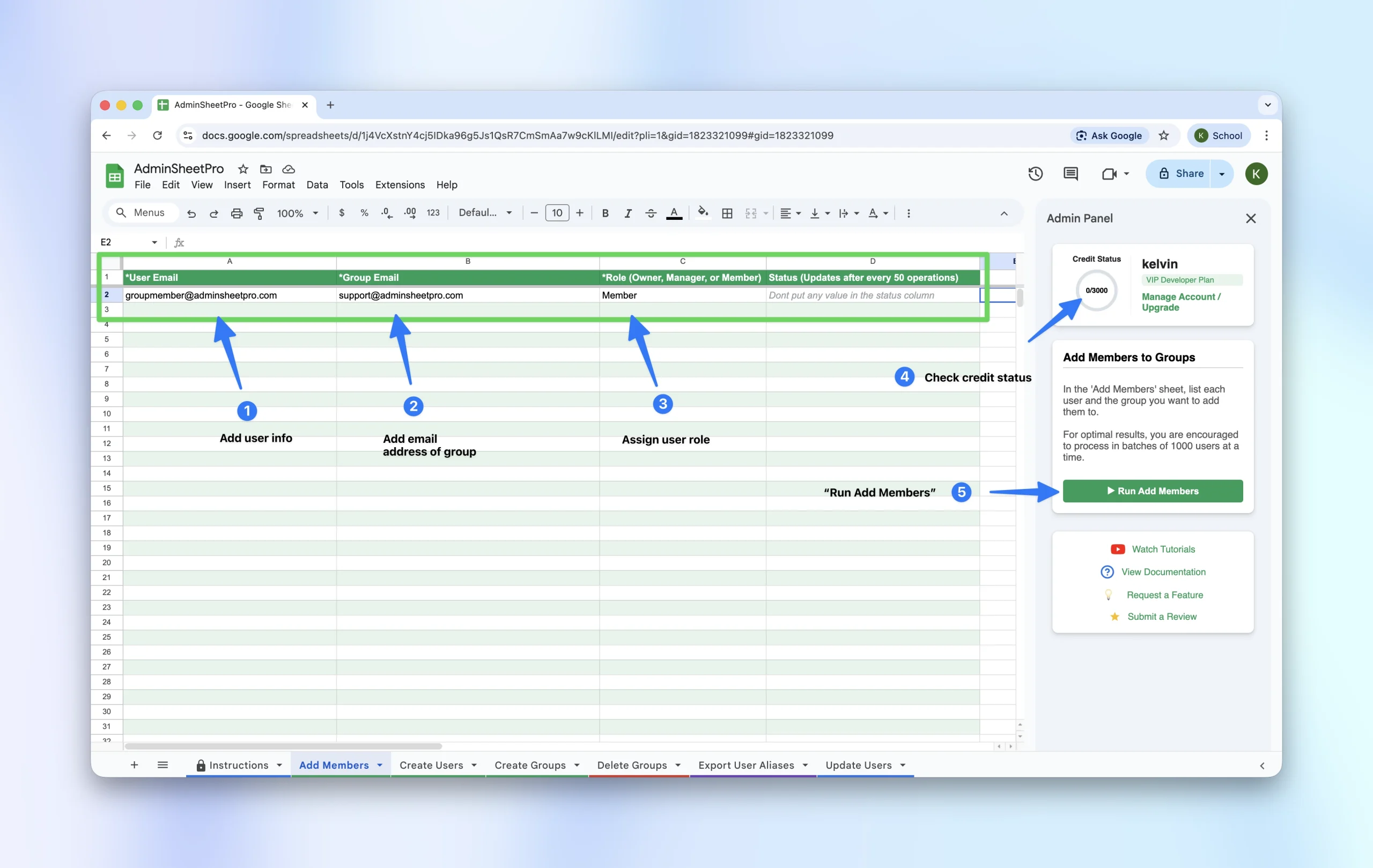 - Hit the “Run Add Members” button to start the operation and watch AdminSheet Pro go to work.